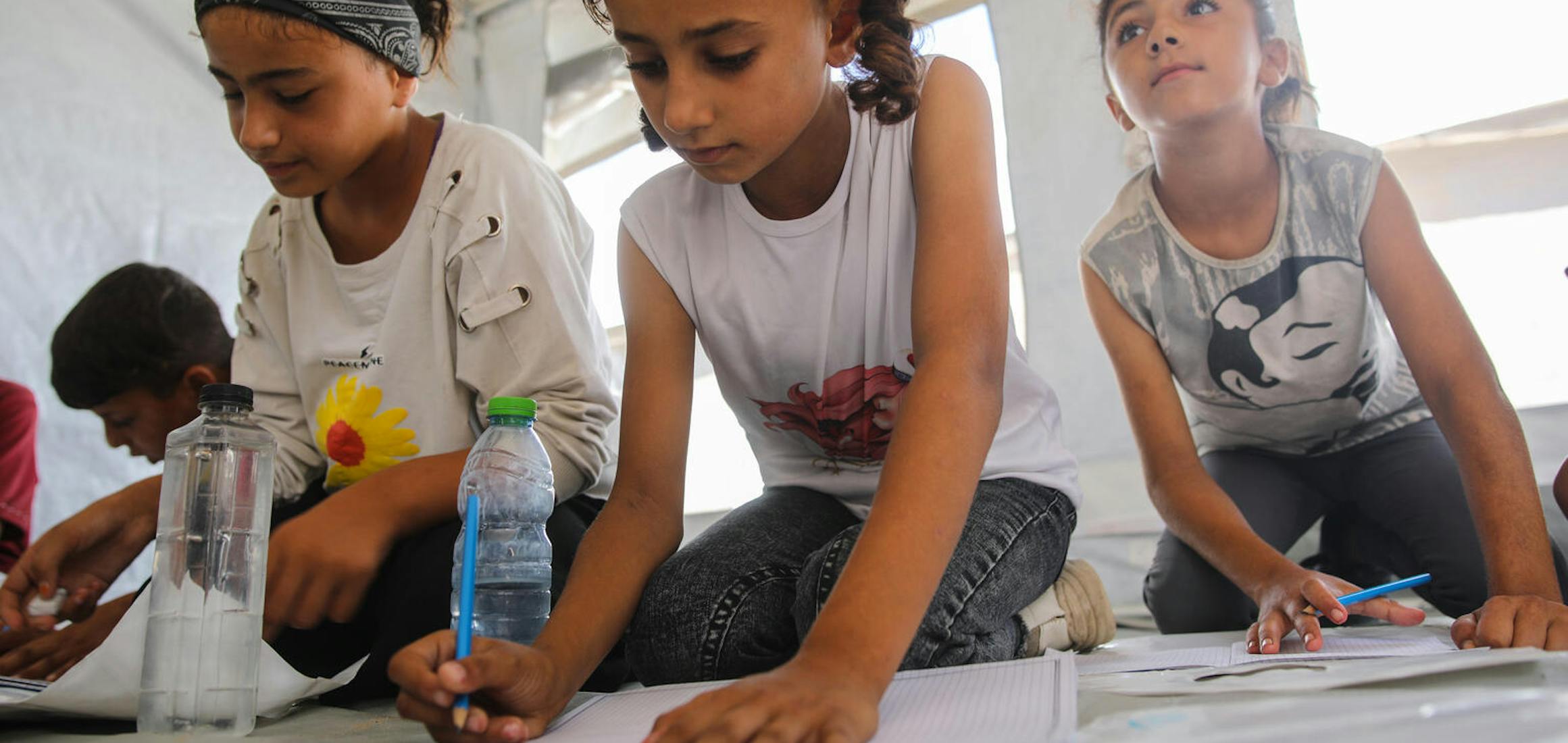 UNICEF, Barnahjálp Sameinuðu þjóðanna, hefur ásamt samstarfsaðilum komið upp 39 tímabundnum skólasvæði á Gaza sem geta tekið við 12.400 nemendum. Að auki hefur neyðarskólagögnum og námsefni verið dreift og sálrænn stuðningur verið veittur börnum, ungmennum, forráðamönnum og kennurum í búðum fyrir fólk á flótta.