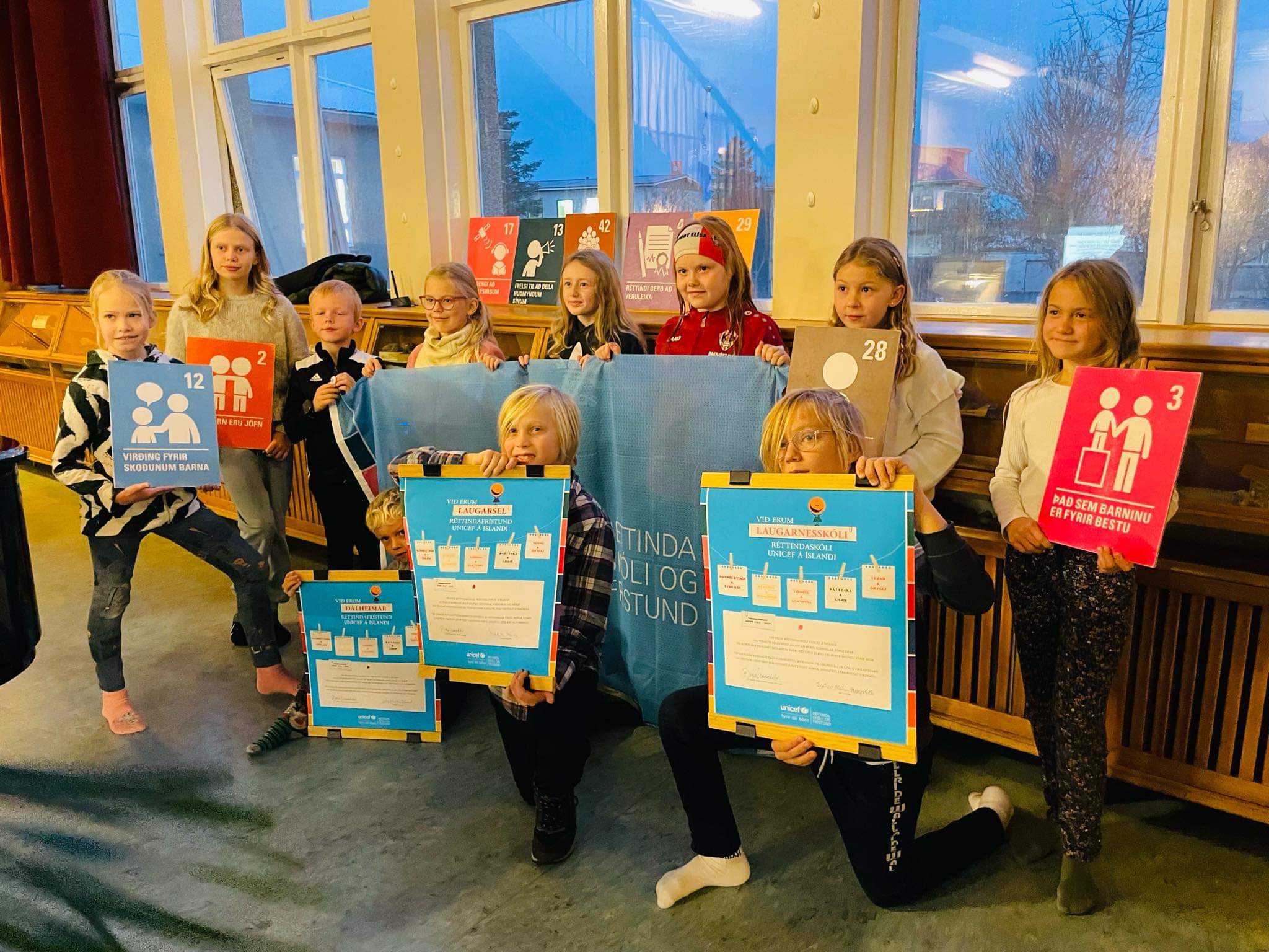 - Við hvetjum ykkur til að taka þátt í að passa réttindi barna og gera góðverk. Við getum verið stolt af því að vera orðin réttindaskóli UNICEF. Við viljum þakka Ástu, Sigrúnu og starfsmönnum UNICEF.